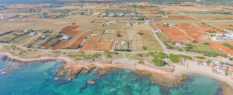 La spiaggia privata è a ca. 450 mt, raggiungibile comodamente a piedi, in bicicletta o con il servizio navetta. Il litorale è misto tra sabbia e rocce piatte, con fondale leggermente digradante e comodo accesso sia per gli adulti che per i bambini. Gli ospiti resteranno stupefatti dagli incredibili colori del mare salentino, cangianti dal verde al celeste, premiato per la quarta volta consecutiva con la Bandiera Blu. In spiaggia potranno cimentarsi in attività di animazione, aquagym, balli di gruppo; o rilassarsi in un ambiente tra i più incontaminati delle coste salentine, raggiungendo a piedi le meravigliose aree protette della riserva naturale. Il servizio spiaggia è incluso nella tessera club e prevede servizio navetta, ombrellone e due lettini per camera. È inoltre possibile raggiungere le vicine spiagge libere, con servizio navetta ad orari prestabiliti: sarà fornito gratuitamente un ombrellone compact portatile per consentire di poter provare l’emozione di trascorrere la giornata al mare in un’oasi protetta e rilassarsi lontano dai lidi organizzati.